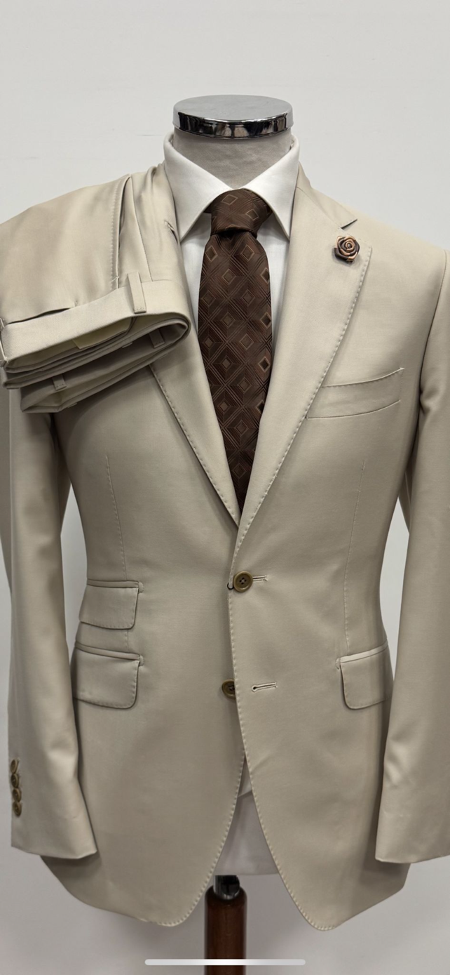 Beige super 150 luxury notch lapel wool suit-Made in Italy