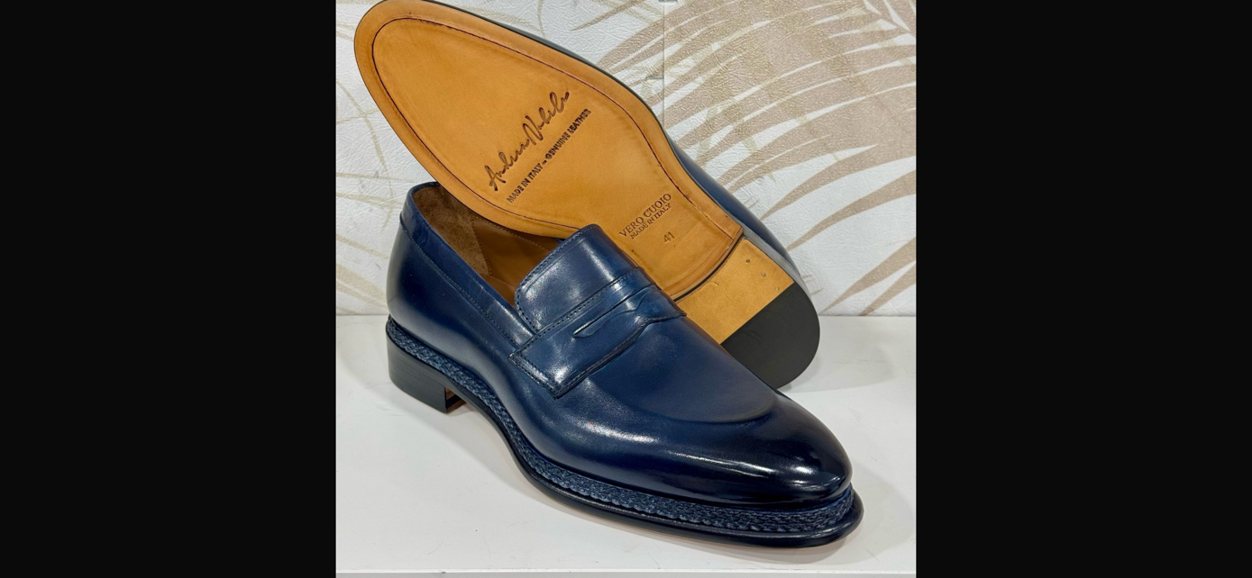 Blue all leather penny loafer slip-on dress shoe-handmade in Italy