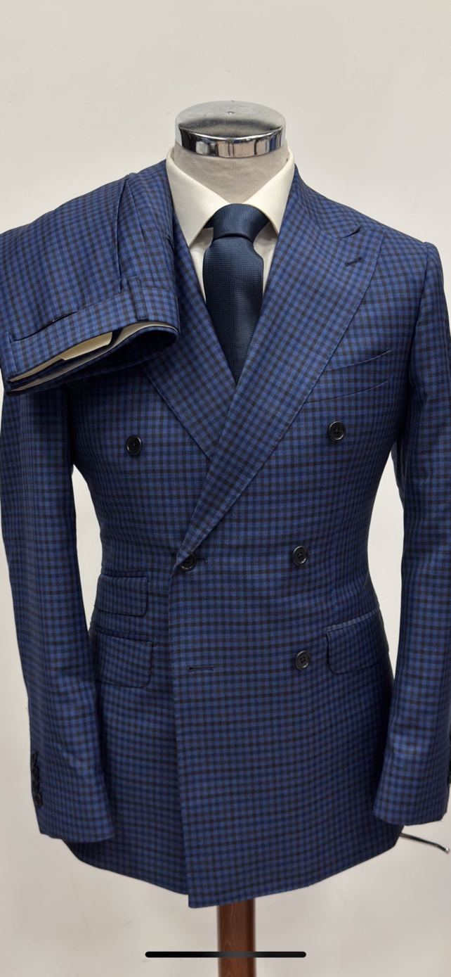 Blue gingham super 180 double breasted wool suit -Made in Italy