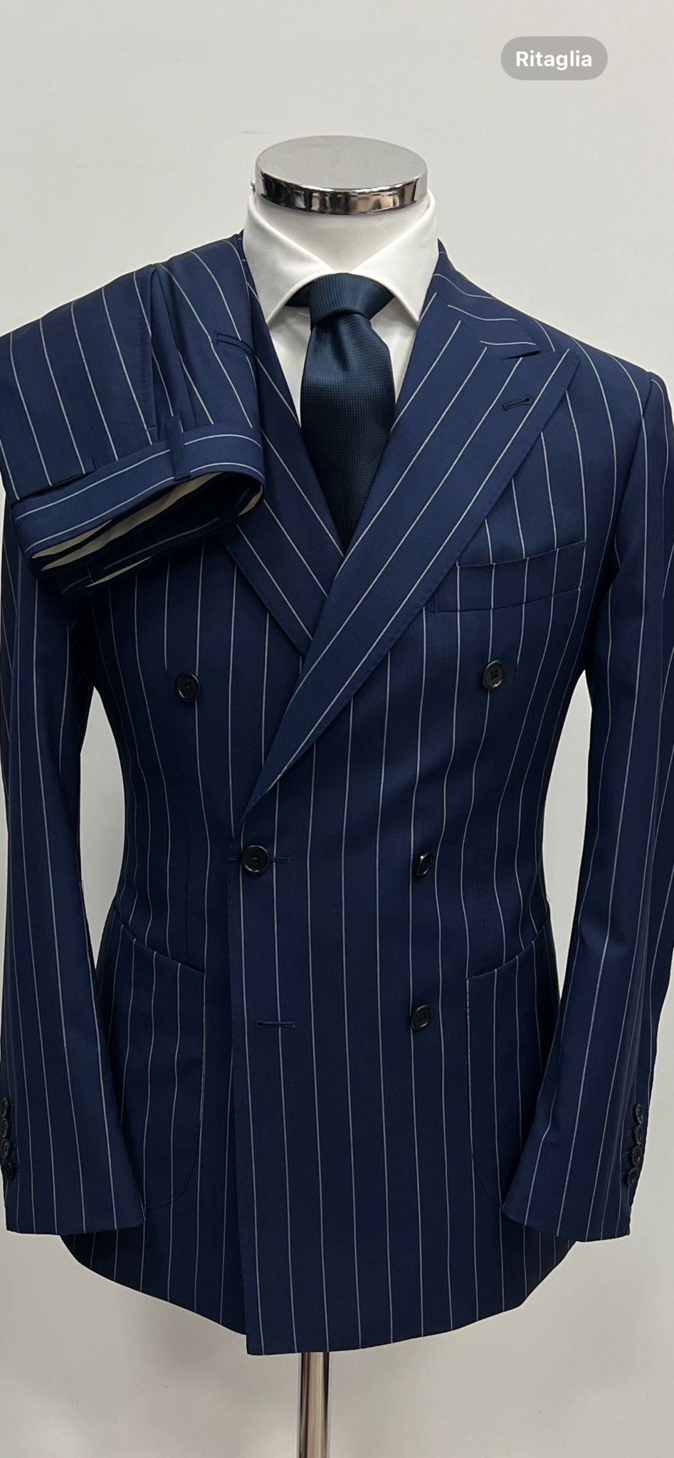 Blue pinstripe super 150 Cerruti 1881 double breasted Italian wool suit