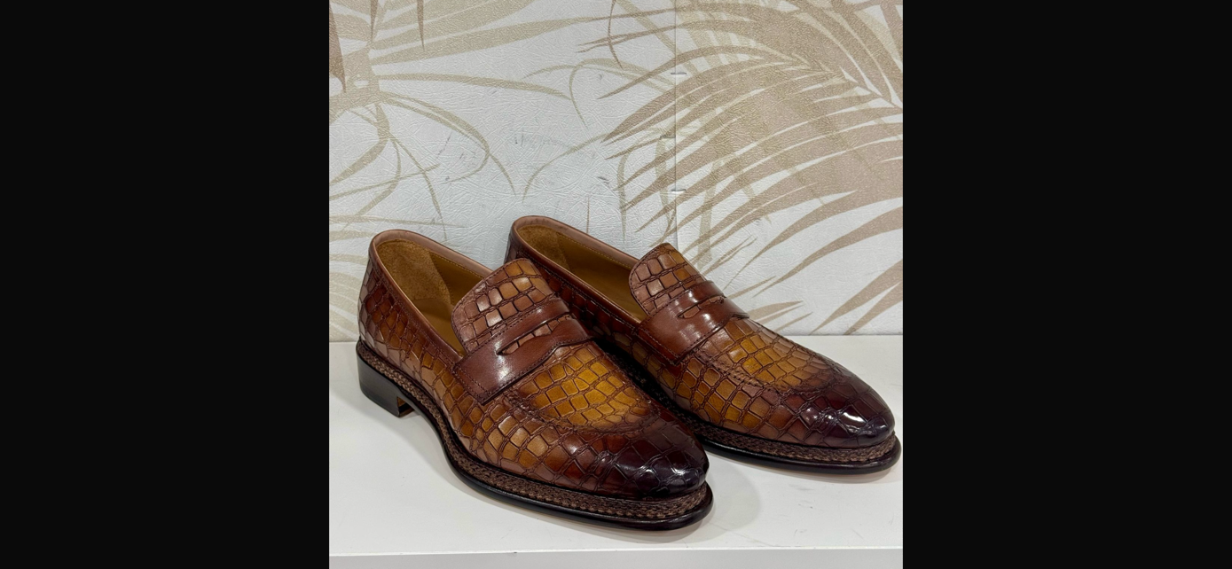 Brown croc print leather penny loafer slip-on dress shoe-handmade in Italy