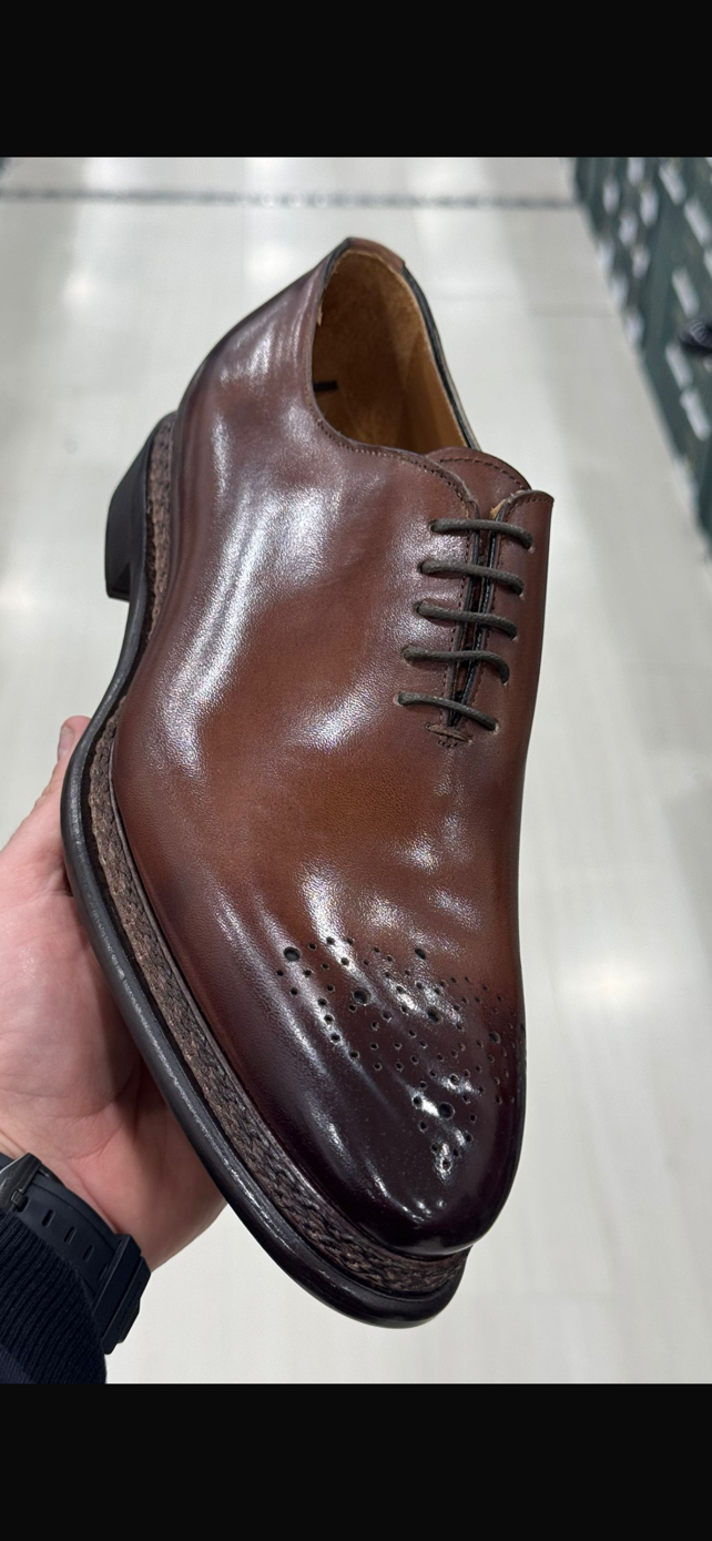 Brown all leather oxford lace up with Norwegian stitching-Made in Italy