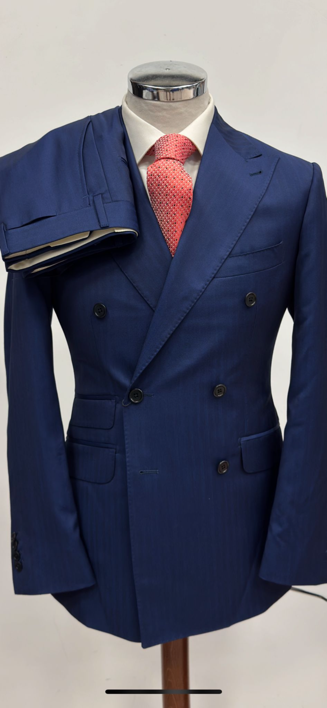 Navy blue Solaro herringbone 180 double breasted wool suit -Made in Italy
