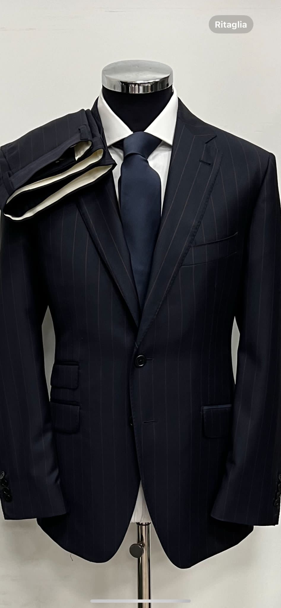 Navy pinstripe wool suit