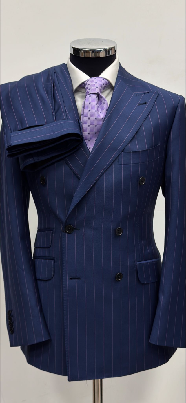 Navy with purple pinstripe double breasted pinstripe wool suit