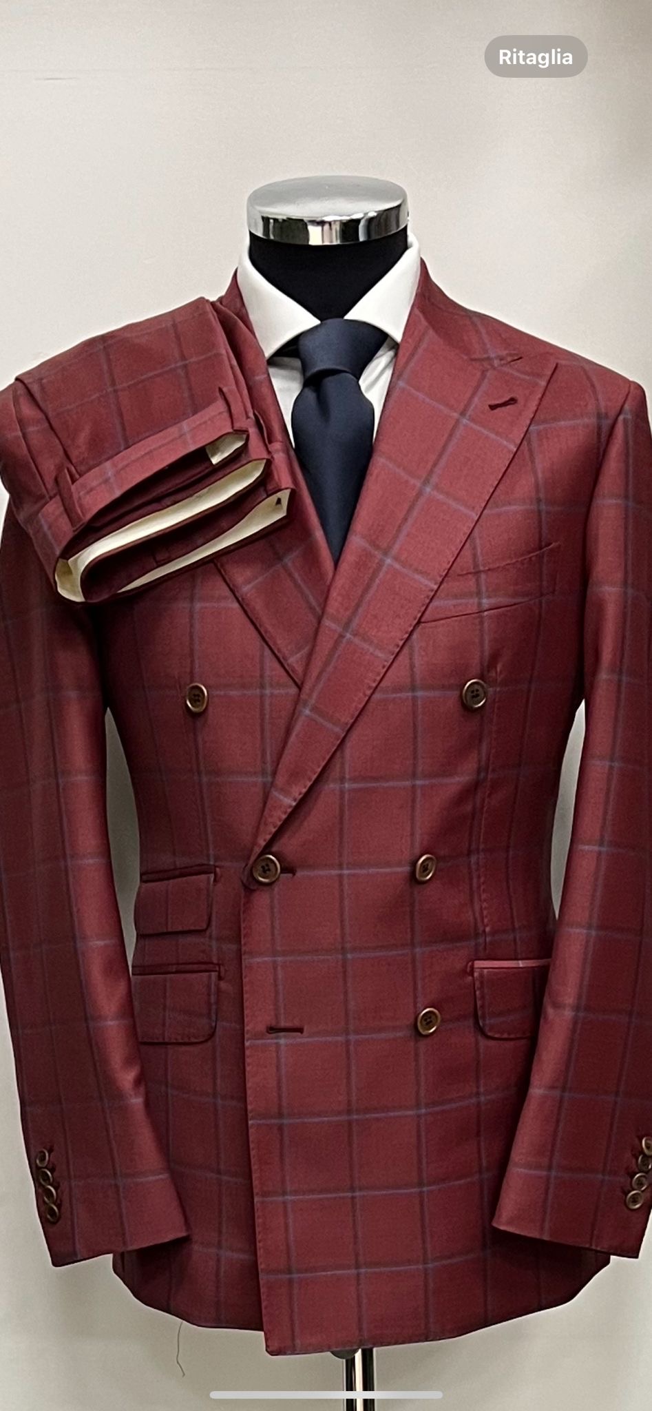 Pink cranberry windowpane double breasted wool suit-made in Italy