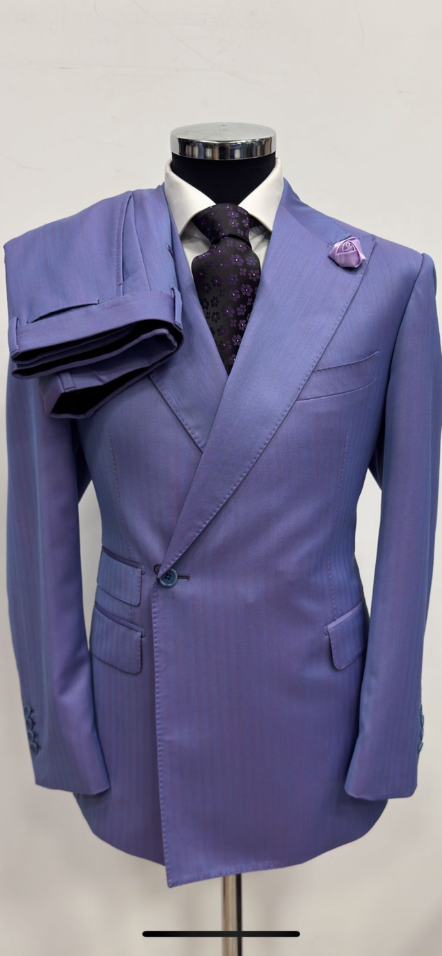-Purple one button super 180 double breasted wool suit-Made in Italy