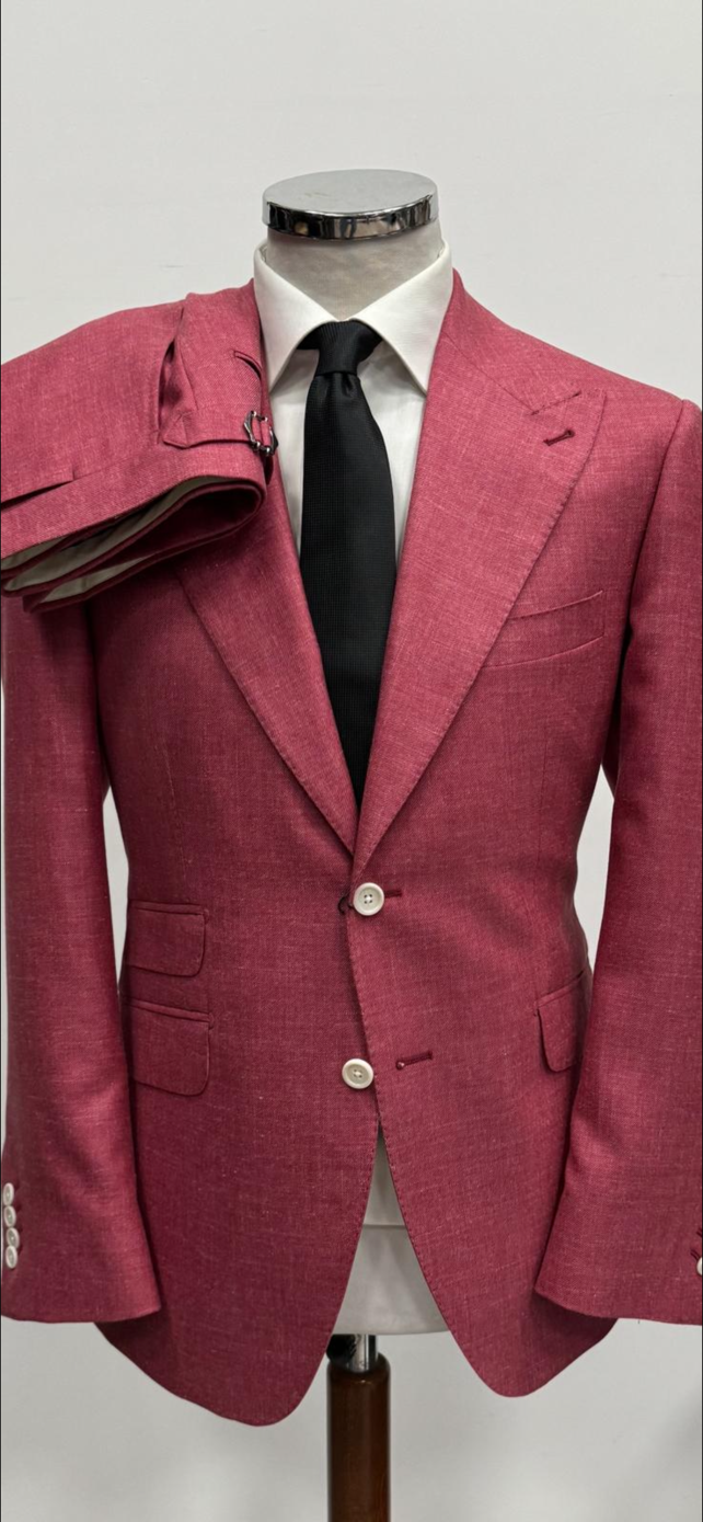 Rose pink super 180 silk and linen luxury suit-Made in Italy